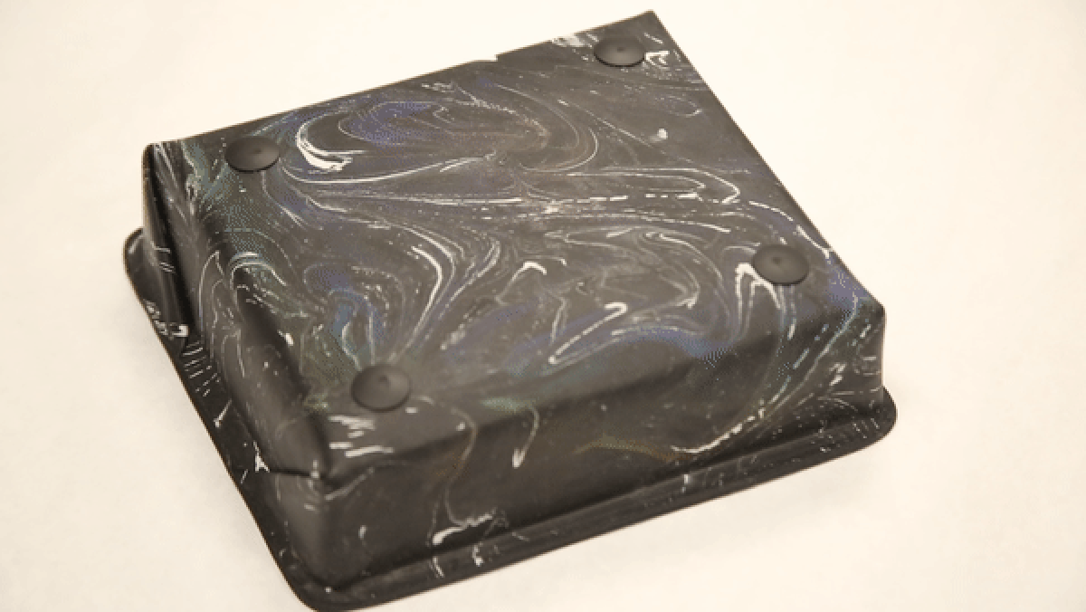 An element of surprise I wanted to add is marbling the leather with liquid crystal.