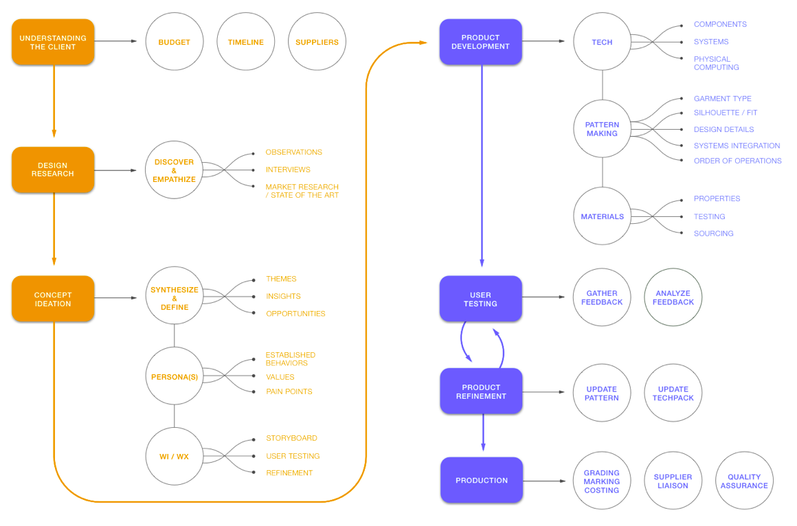 The challenge of manufacturing wearables and functional apparel is hard and soft goods integration. Currently, factories do not have the equipment or skilled labor to assemble garments and hardware all under one facility. Therefore, systems need to be modular.